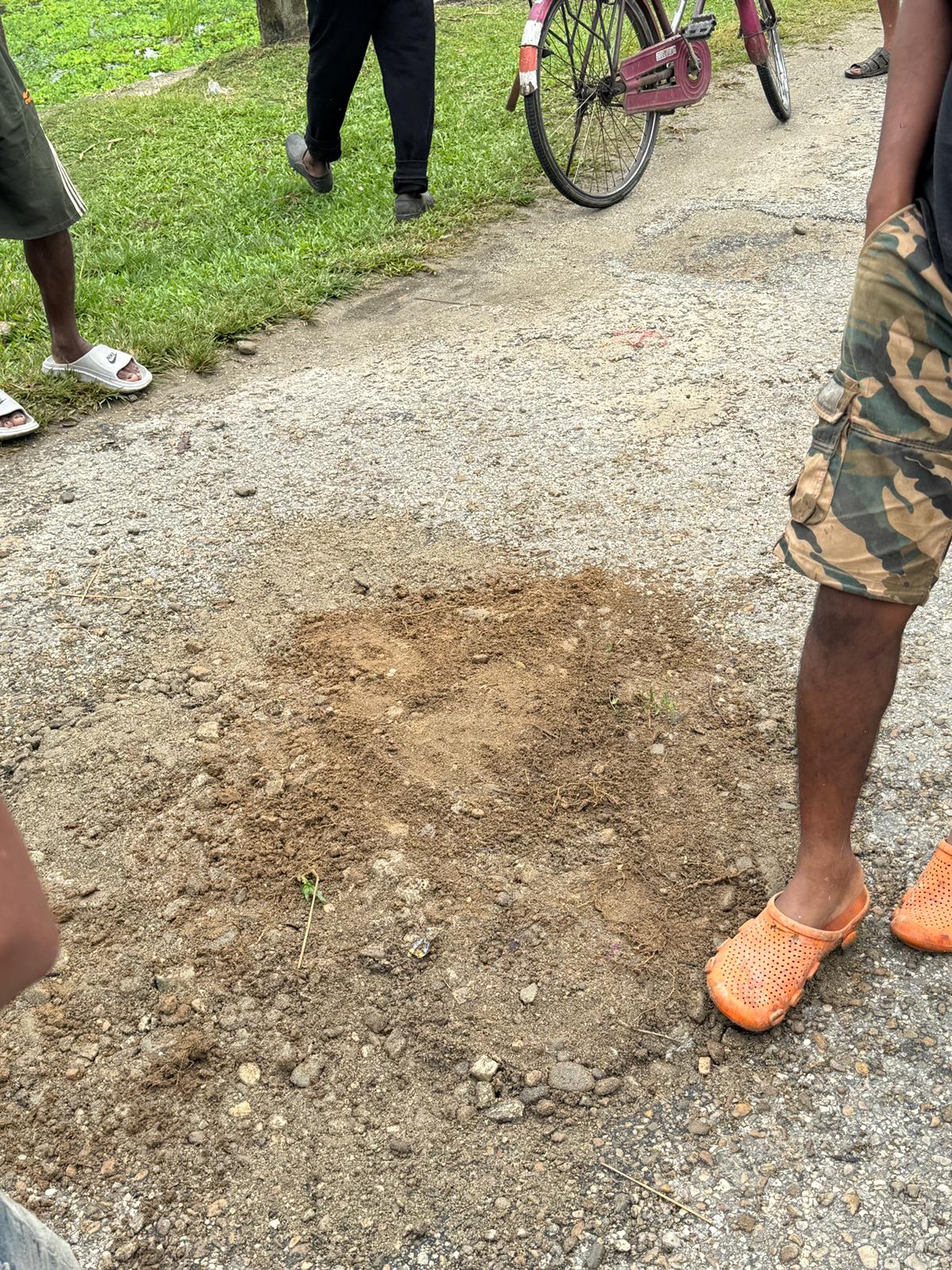 केचना सडकमा परेको भ्वाङ स्थानीयले पुरे