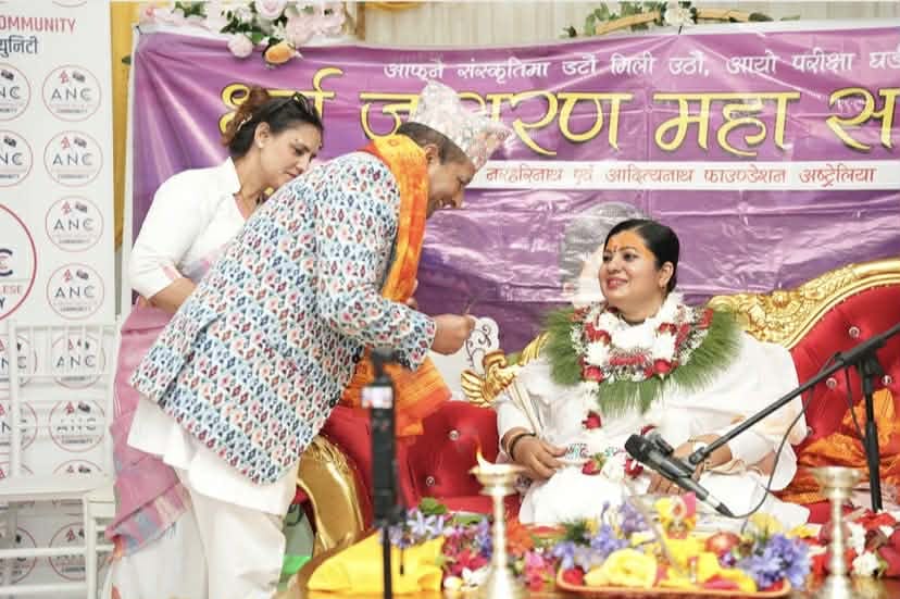 ​सिड्नी— अष्ट्रेलियाको सिड्नीमा तीन दिवसीय ‘धर्म जागरण महासत्सङ्ग’ आध्यात्मिक कार्यक्रम भव्य रूपमा सम्पन्न भएको छ। श्री योगी नरहरिनाथ एवं आदित्यनाथ फाउन्डेसन अष्ट्रेलियाको आयोजनामा सन् २०२६ जनवरी २ देखि ४ सम्म सञ्चालित उक्त कार्यक्रममा अन्तर्राष्ट्रिय कथावाचिका भागवत मञ्जरी राधिका दासीले प्रमुख कथा प्रवचन दिएकी थिइन्। सनातन संस्कृति, नाथ योग दर्शन र आध्यात्मिक चेतना प्रवर्द्धन गर्ने उद्देश्यले आयोजित महासत्सङ्गको पहिलो दिन मन्त्रोच्चारणसहित कलश यात्रा गरी राधिका दासीको स्वागत गरिएको थियो। औपचारिक सत्रमा संस्थाका सचिव कृष्ण सुवेदीले स्वागत मन्तव्य राखेका थिए भने कार्यक्रम संयोजक एवं अध्यक्ष पण्डित नारायण शास्त्रीले कार्यक्रमको उद्देश्य र महत्त्वमाथि प्रकाश पारेका थिए।