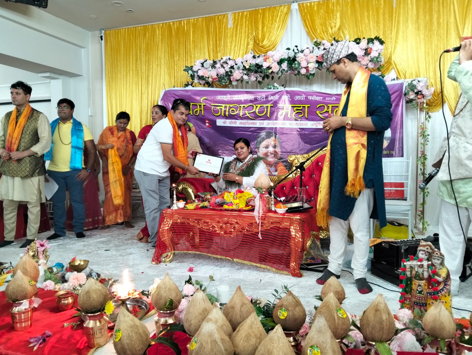 सिड्नीको धर्म जागरण महासत्सङ्गमा राष्ट्रिय हिन्दू एकता मञ्चका अध्यक्ष इन्द्रप्रसाद ओली सम्मानित