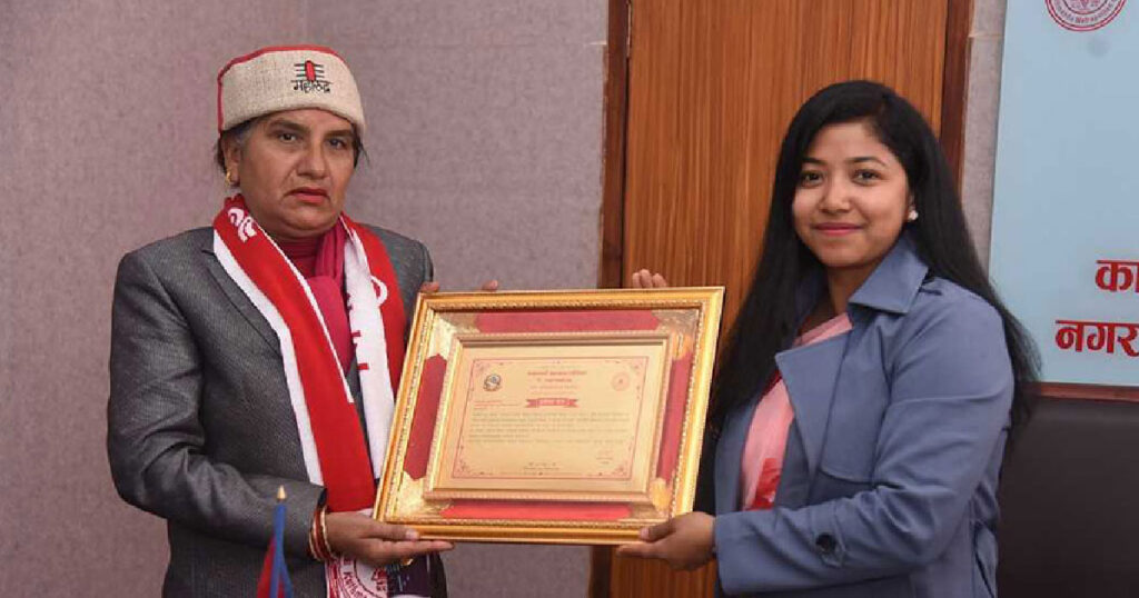 काठमाडौँ । काठमाडौँ महानगरपालिकाले मोटरसाइकल यात्रामार्फत नेपाली महिलाको साहस र पहिचान प्रवर्द्धन गरिरहेकी शुशिला उप्रेती तिवारी (बुलेट आमा) लाई प्रशंसा
