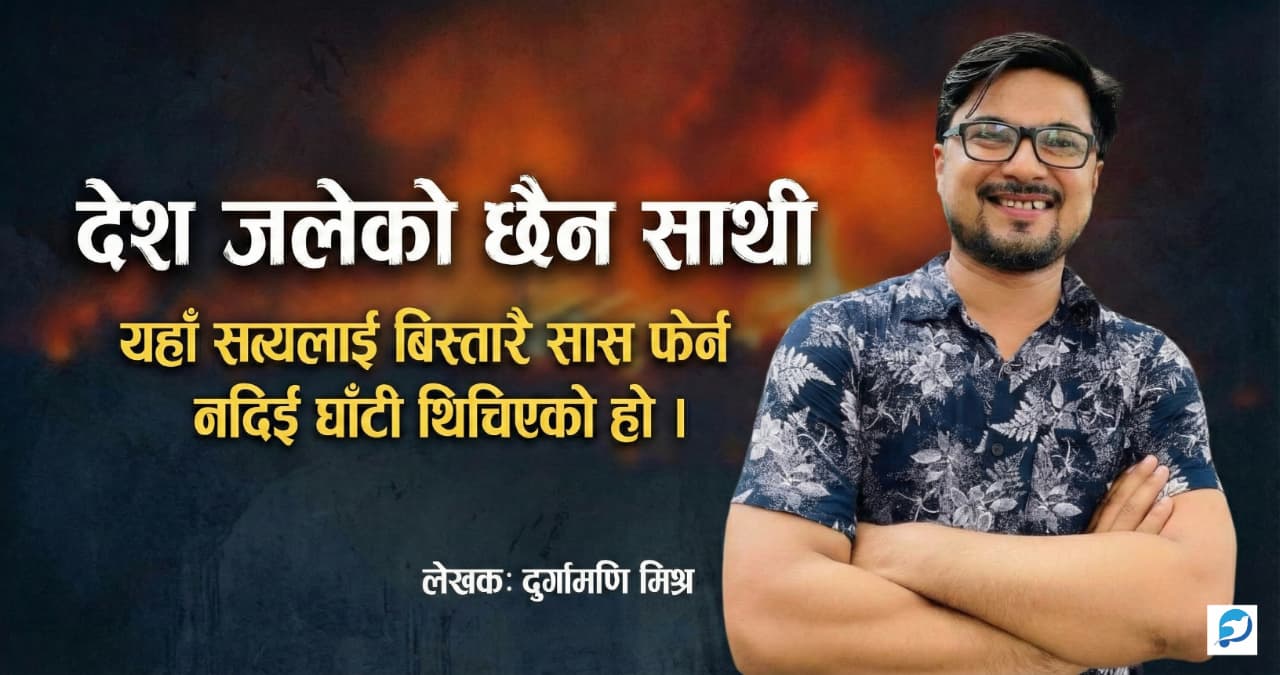 दुर्गामणी मिश्र यहाँ देश जलेको कुरासबैले गरे,तर आगो किन बल्यो?कसैले सोधेन।धुवाँको दोषशहिदहरुलाई थोपरे,चिसो कुर्सीमाबसेकाहरू मौन रहे। यहाँ देश जलेको होइन,यहाँ