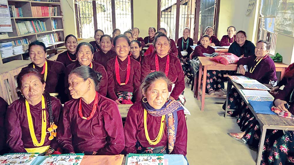 दोलखा। परिवारको जिम्मेवारीले थिचिएका आमाहरू विद्यालय जानुहुन्छ । साडीचोलो र पोतेमै सजिएर विद्यालय पुग्दा उहाँहरूको मुहारमा छुट्टै आशा झल्किन्छ । हो,