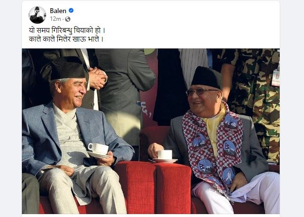 काठमाडौं महानगरपालिकाका मेयर बालेन शाहले नेपाली कांग्रेसका सभापति शेर बहादुर देउवा र नेकपा एमाले अध्यक्ष केपी शर्मा ओलीबीच नयाँ गठबन्धन
