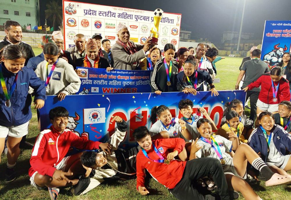 झापा। प्रथम कोशी प्रदेश स्तरीय महिला फुटबल प्रतियोगिताको उपाधि झापाले जितेको छ ।आइतबार राति विराटनगरमा भएको फाइनल खेलमा पाँचथरलाई ३ ०